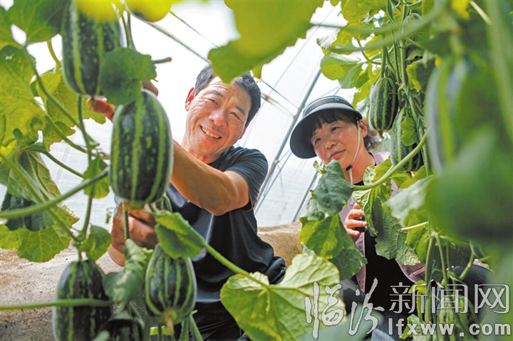 临汾新闻网讯 近日,在襄汾县西贾乡西毛村,农户在大棚内对甜瓜进行管护。入夏以来,西毛村的果蔬种植基地大棚内,成排的吊秧甜瓜即将成熟,瓜香四溢,沁人心脾。农户们忙碌地穿梭其间,对甜瓜进行精心管护,为抢“鲜”上市做准备。