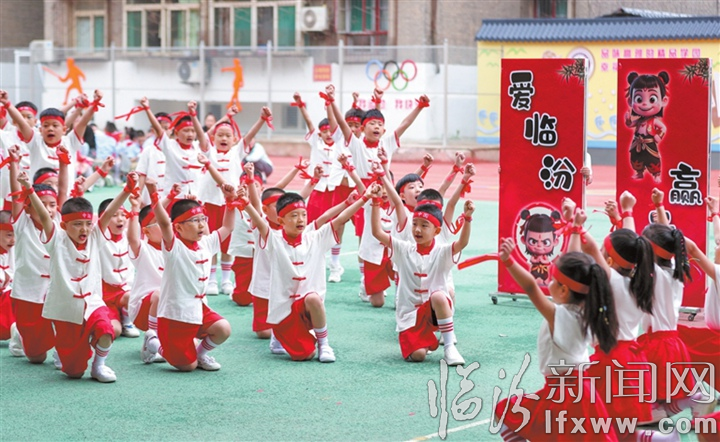 临汾新闻网讯 5月23日,临汾市解放路小学的学生们在表演文明礼仪手势舞。当日,该校二年级举行了以“文明礼仪润童心”为主题的文明礼仪手势舞比赛,12个班级的孩子们用纯真炙热的表演,将“最初中国·文明临汾”“文明十小事”和日常行为准则化作灵动舞姿,以实际行动传递文明理念。