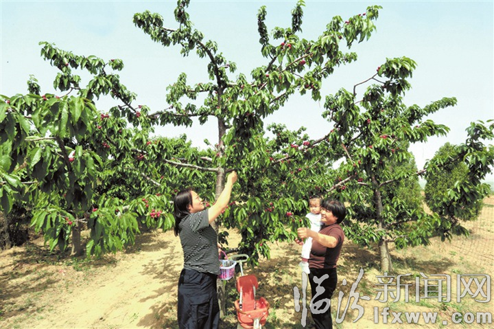 临汾新闻网讯 近日,游客在尧都区县底镇苏寨村樱桃园里采摘樱桃。近年来,苏寨村充分发挥红色旅游基地资源优势,大力发展樱桃、鲜桃、苹果等水果种植,并推出“红色基地一日游”优惠采摘活动,吸引游客走进果园采摘,促进农业增效、农民增收。