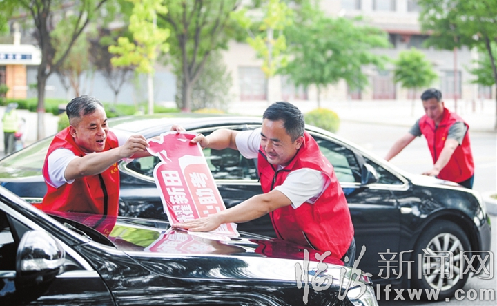 临汾新闻网讯 6月4日,侯马市退役军人正在给车辆张贴助考服务车标识。近日,侯马市退役军人事务局发出“戎耀新田·爱心助考”志愿服务倡议,退役军人踊跃报名,50辆助考车参与服务高考学子。据了解,4月23日,侯马市第8次荣获“全国双拥模范城”称号,是全省获此称号次数最多的县级行政区。