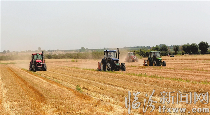 近日,在襄汾县南贾镇上鲁村,农机手正驾驶复播机复播玉米。眼下,当地农民抢抓农时,复播秋粮,田间地头一派繁忙的景象。