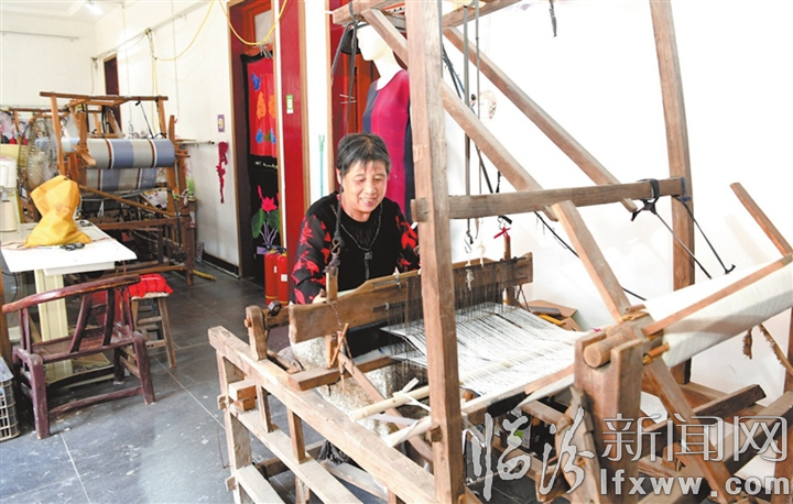 近年来,当地大力发展“土布”织造特色产业,从产品设计、市场推广、农户培训到订单生产,实现“企业+工坊+农户”的产业链模式,带动村民就业增收。