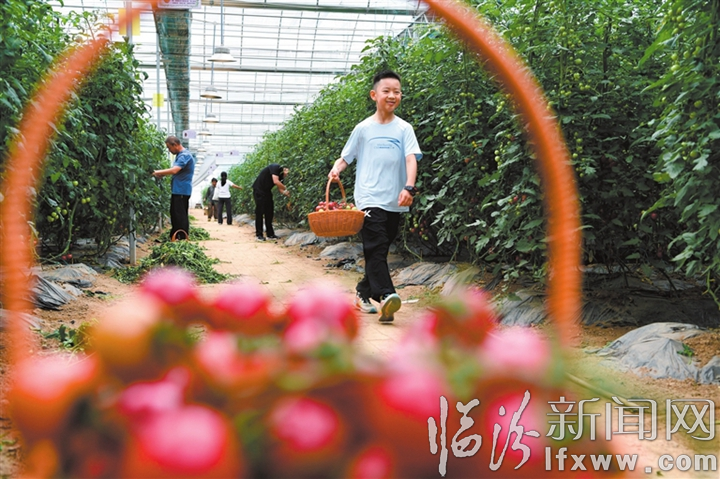 7月2日,游客在乡宁县井上村农业采摘园采摘圣女果。近年来,乡宁县积极发展乡村旅游,具有乡村特色的农家乐、采摘园等日益增多,吸引了众多游客前来游玩。
