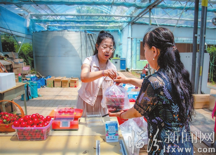 临汾新闻网讯 近年来,乡宁县管头镇井上村党支部高效推进“头雁工程”,村“两委”班子包片跑销路、育人才、拓新路,借直播带货拓展渠道,以实干让大棚成为“增收田”,结出“增收果”,绘就乡村振兴新画卷,写下生动注脚。图为游客在井上村现代农业产业园体验采摘乐趣之余,品尝购买圣女果。