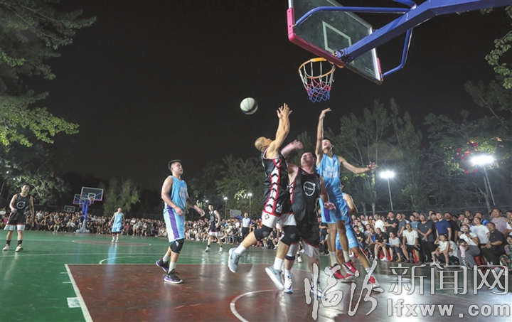 临汾新闻网讯 7月10日,在市汾河文化生态景区灯光篮球场,球员们在赛场上激烈角逐。