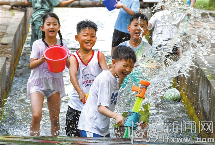 临汾新闻网讯 7月20日,在尧都区一家农家乐溪水营地,孩子们在打水仗。盛夏时节,高温持续“在线”,我市一些游泳馆所、游乐园、休闲农家乐举办了丰富多彩的戏水活动。孩子们投身水世界,尽情享受水的清凉和欢乐,成为一道独特的避暑风景线。