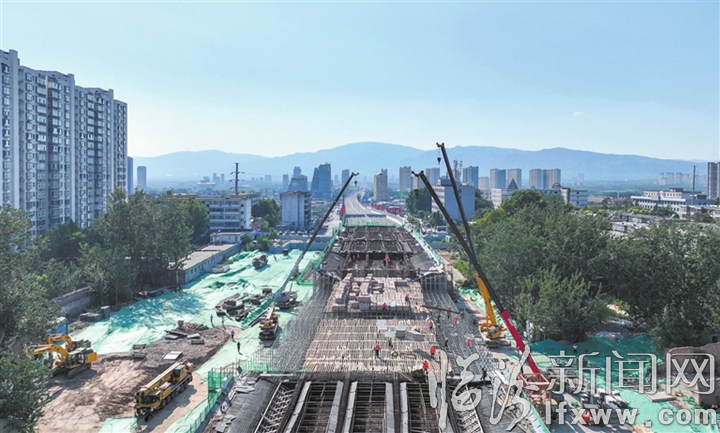 临汾新闻网讯 7月28日,临汾市快速中环收尾工程北外环路“冷库段”节点正在紧张施工。连日来,该路段建设工地施工方在做好高温防暑工作的前提下,制定科学施工方案,错时施工,全力冲刺保障项目建设进度,奏响夏日施工的奋进乐章。
