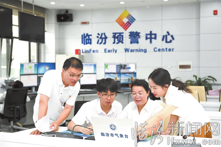 临汾新闻网讯 8月4日,在临汾市气象局监测预警中心,气象预报员在会商天气情况。随着“七下八上”主汛期的到来,该局全体干部职工24小时在岗值守,严密监测天气变化,力求实现预报精准、服务精细、监测精密,确保预警信息及时准确发布,为全市防汛减灾工作筑牢气象防灾减灾第一道防线。