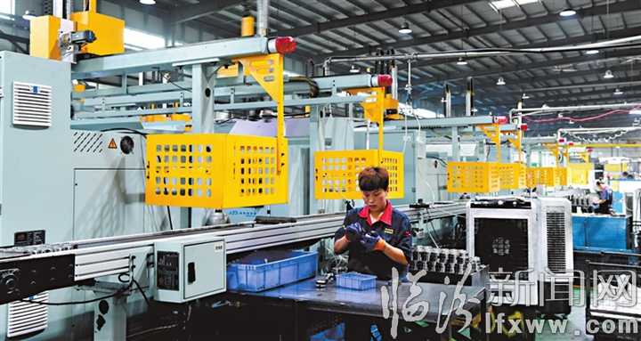 临汾新闻网讯 8月16日,在华翔(洪洞)智能科技有限公司生产车间,工人在检测空调压缩机零件气缸。据了解,该公司1-6月份,产品销售额达8.24亿元,比去年同期增长了149.8%。