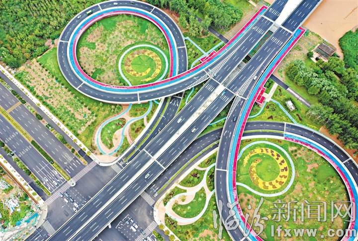 临汾新闻网讯 8月16日,从空中俯瞰临汾姑射桥,在桥梁引线处的龙盘造型绿植十分惊艳。据悉,该处龙盘造型绿植以出土陶寺遗址,距今已有数千年的彩绘蟠龙纹陶盘为参照,在历史神韵中妆点现代化城市,让文化自信蕴藏在城市的每个角落。