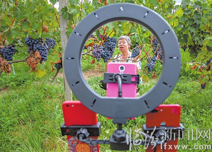 临汾新闻网讯 近年来,乡宁县昌宁镇下县村借力互联网,通过直播带货、电商平台,开展亲子研学活动,打造“采摘+餐饮+住宿”一站式体验,提升农产品附加值,为乡村振兴增添强劲动力。图为该村葡萄采摘园直播现场。