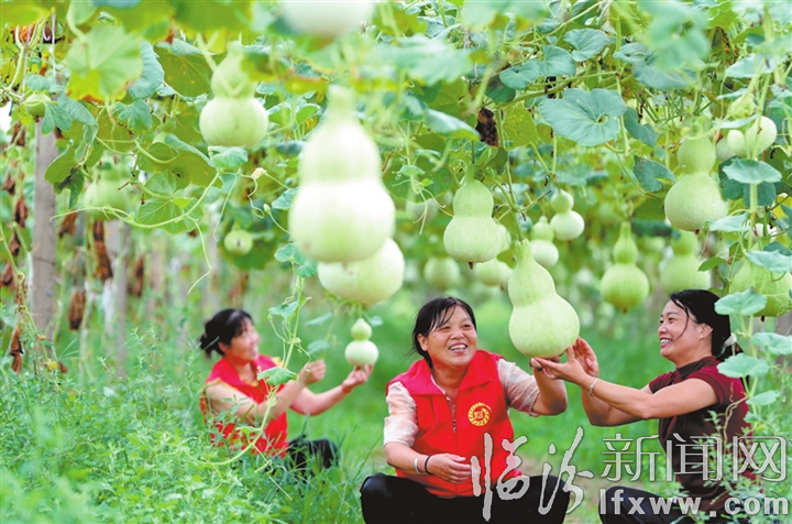 临汾新闻网讯 8月22日,在曲沃县里村镇中立村福禄种植专业合作社,村民在葫芦种植园察看葫芦长势。里村镇结合产业发展实际,种植葫芦150余亩,形成了“种植、收购、加工、销售、旅游”为一体的全产业链条,走出了一条“小葫芦”种出“大产业”的致富新路径。