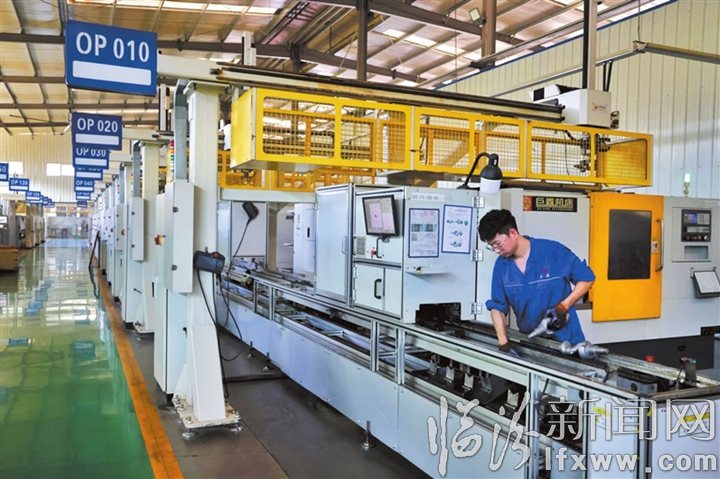 临汾新闻网讯 位于侯马经济开发区浍南工业园区的山西东鑫衡隆机械制造股份有限公司,是一家专注于采用铁型覆砂智能铸造工艺和数控加工技术,专业生产各类高性能球墨铸铁曲轴产品的高新技术企业,其产品畅销国内市场并出口10余个国家。图为该公司工作人员在流水线上作业。