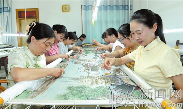 临汾新闻网讯 8月28日,乡宁县昌宁思丽刺绣坊内,工人们正在赶制刺绣作品。近年来,乡宁县大力鼓励开办刺绣等特色村级企业,既传承了传统技艺,又让村民在家门口实现就业,走出了一条百姓增收的特色产业路。