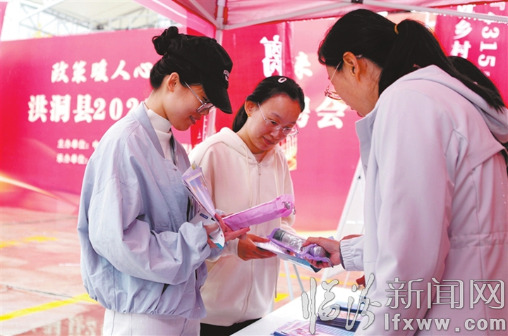 临汾新闻网讯 9月23日,洪洞县2025年秋季招聘活动举行,共有24家企业参与招聘,提供包括文化传媒、医疗、新媒体、教育、新能源等行业在内的800余个就业岗位,吸引了众多求职者前来咨询应聘。图为求职者在招聘会现场了解岗位需求情况。