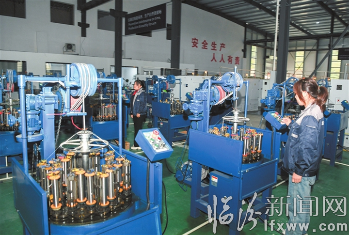临汾新闻网讯 近日,在霍州厨卫具产业园内,机器轰鸣声此起彼伏,各公司开足马力赶订单、抢进度,全力冲刺新的生产目标。一件件精美厨卫用品从生产线下线,销往全国各地。图为霍州市亿景科技有限公司工作人员在加紧生产不锈钢编织防爆管。