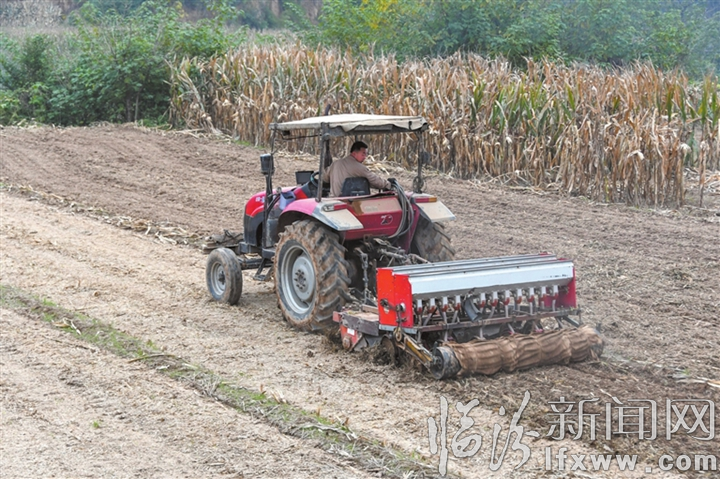 临汾新闻网讯 10月29日,尧都区贾得乡沟东村村民在进行小麦播种作业。连日来,贾得乡抢抓有利时机,精准调配农机资源,推广宣传小麦晚播技术,全力推进小麦抢种进度,提高播种量,确保秋播顺利推进。