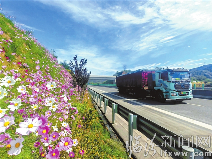 临汾新闻网讯 近日,在国道341古县下冶段,宽阔的公路上,公路两侧的边坡上大片色彩缤纷的花朵绚烂绽放,有粉色、白色等,在蓝天、白云的映衬下,与远处的桥梁、山峦共同构成了一幅清新且富有生机的画面,展现出公路沿线独特的自然与交通交融之美。
