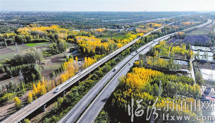 近日,一列高铁在大西高铁临汾段疾驰。初冬时节,平阳大地层林尽染,金黄、浅褐、墨绿等颜色层层叠叠,仿佛用画笔精心晕染,每一处景致都令人心旷神怡。