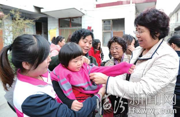 近日,市妇联工作人员和“爱心妈妈”们在我市聋儿康复语训部为孩子们穿上爱心毛衣。