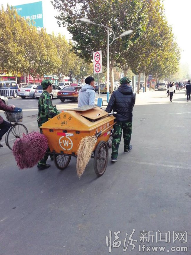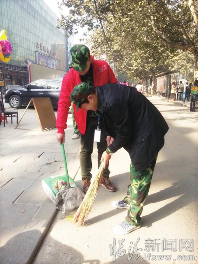 对员工进行岗前培训是很常见的事情,可是培训内容包括上街清扫道路就让人觉得有些新鲜了。11月19日上午,在市区解放路、红卫路以及贡院街的主要街道上,一些穿着迷彩服的年轻人推着保洁车、沿路清扫的身影吸引了很多来往市民的注意。