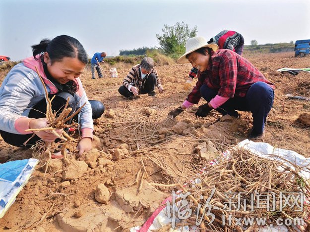 近日,翼城县南唐乡下阳村民马登林一家正在收获黄芩。近年来,翼城县加快特色农业产业基地建设,下阳村建成了以丹参、黄芩、牡丹为主的中药材基地1400余亩,今年预计可为村民增收280余万元。