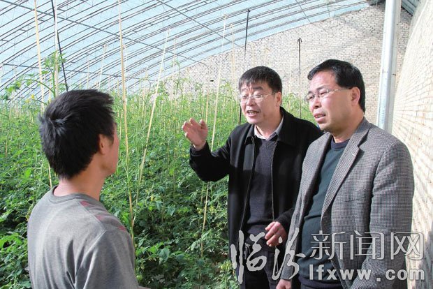 近日,山西农业科学院蔬菜研究所教授和曲沃县农业综合开发办工作人员在磨盘岭西红柿无土栽培试验棚观察西红柿长势,指导菜农搞好田间管理。曲沃县围绕发展“一县一业”和“建设全省最大设施蔬菜基地”的目标,大力发展设施蔬菜,目前已建成设施蔬菜大棚7000余栋。
