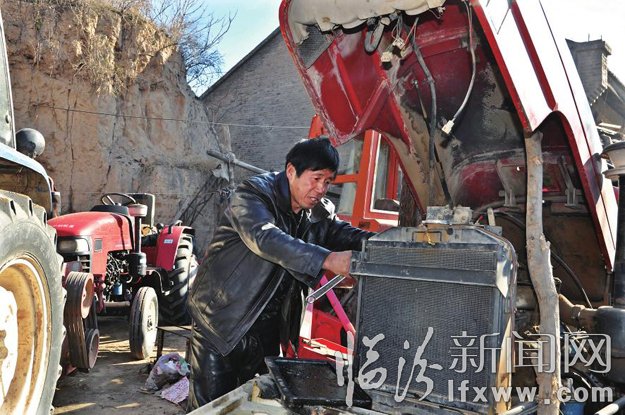 近日,吉县吉昌镇农机手杨曙升创建了吉县第一家农机大院,并联合十多名农机手成立曙升农机专业合作社,利用农闲时间免费为群众检修、调试各类农机具,受到群众好评。图为杨曙升正在检修农机。吕桂明 摄