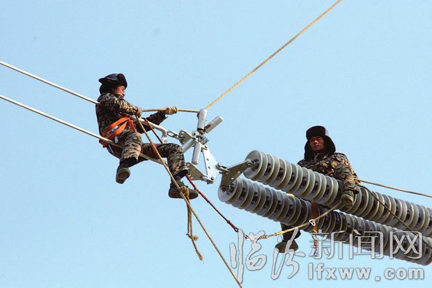 “野外工作环境相对比较艰苦,再加上气温较低,为施工带来了一定的难度。就拿高空作业的人员来说,常常是被‘悬挂’在半空中,一呆就是七八个小时。因此,为了保证工人们的施工安全,我们采取了相对严格的安全防护措施,在确保质量的前提下,时刻都要绷紧‘安全弦’。”负责地面指挥工作的项目经理关振峰,趁着休息的空档儿,连忙为记者做起了“讲解员”。