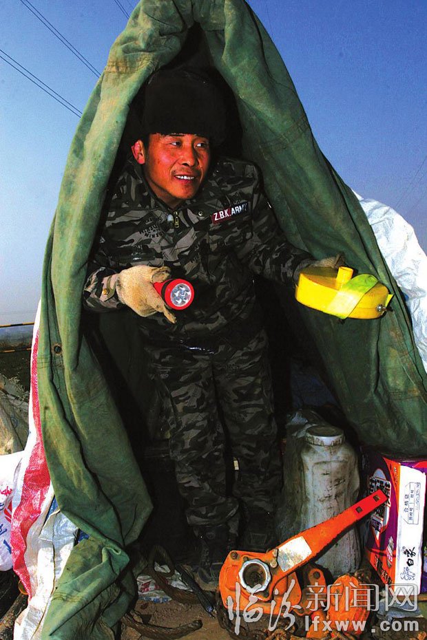 下午5点半,天色渐渐暗了下来。采访即将结束时,在工地的一角,记者发现了一个非常简易的帐篷,带着好奇,上前一探究竟。“除了白天的正常工作,晚上就在这个简易帐篷里负责看管施工物品,尤其是后半夜,披着棉大衣出来在工地上巡夜,必须保证工地物品的绝对安全。”41岁的工人周华伟笑着说,一个手电筒、一个暖手宝就是陪伴在自己身边的两件“宝物”,为了确保施工物品的安全,自己必须尽职尽责。