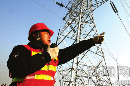 “今天,我们主要进行的是导线压接的工作,你看,现在工人们正在近40米高的铁塔上进行导线安装作业,这可容不得一丝一毫地大意啊!”顺着临汾送变电工程公司副经理陈斌手指的方向,记者抬头仰望,在40米的高空铁塔上,只见两位“蜘蛛侠”正在有条不紊地完成自己的“差事”。
