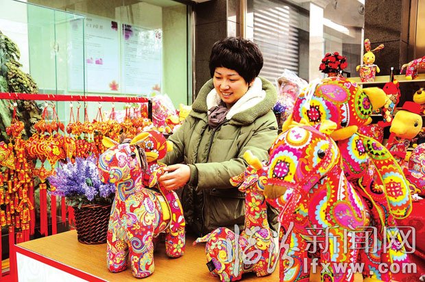 1月8日,记者在我市各大商场看到,各式新年的吉祥摆件、挂件纷纷出现在商场的货架上,尤其以马年为主题的马形象卡通玩偶十分醒目。据销售人员介绍,因为与马相关的寓意特别多,而且很吉祥,这些摆件都卖得很好。