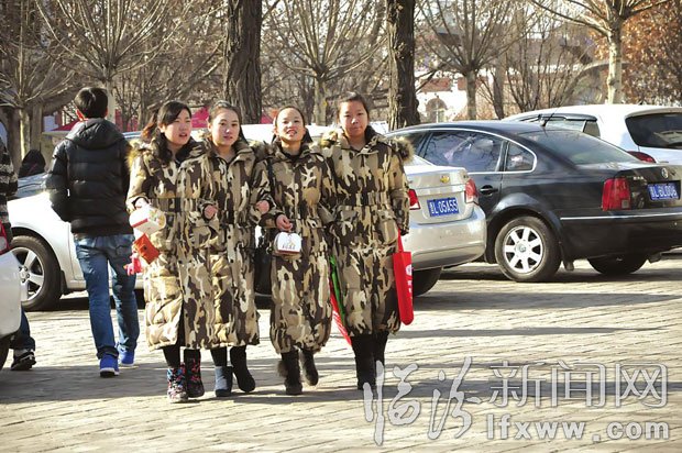 统一穿着的4名艺考生,成了一道亮丽的风景线。