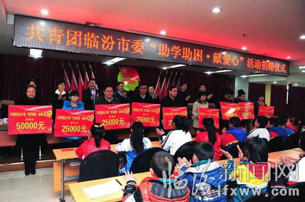 临汾新闻网讯(记者 李虎威 王伟)1月15日上午,共青团临汾市委“助学助困·献爱心”活动捐赠仪式在尧都农商行7楼会议室举行,我市50名贫困学生代表现场拿到了资助款,并有20名特困学生与临汾铁路公安处职工签订了结对“助学助困·献爱心”意向书。市委副书记王文英、团省委书记赵雁峰出席捐赠仪式并讲话。