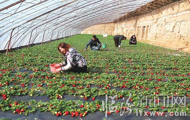 近日,在翼城县南唐乡河云草莓专业村草莓温室大棚内,人们正在采摘草莓。河云村目前已发展大棚草莓900亩,其中温室大棚180余个,弓棚300余个,钢架棚5个。该村的大棚草莓已陆续成熟上市,供应春节市场。本报记者李自强摄