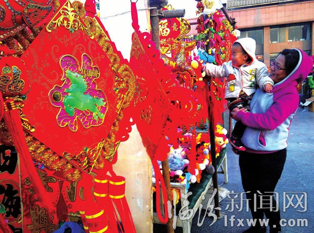 随着春节的临近,年味越来越浓,大街小巷处处洋溢着浓郁的年味。1月22日上午,记者在平阳广场看到,年画、福字、对联、窗花、中国结、挂签等物品纷纷上市热卖,红彤彤的挂签、红红火火的鞭炮挂饰尤其引人瞩目。