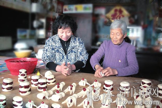 1月20日,霍州市辛置镇宋庄村村民杨元杏和郑爱秀正在制作年馍。近年来,该市积极引导民俗文化产业发展,加大扶持力度,给予政策资金支持,年馍大规模手工制作已成为当地的一大新兴产业。