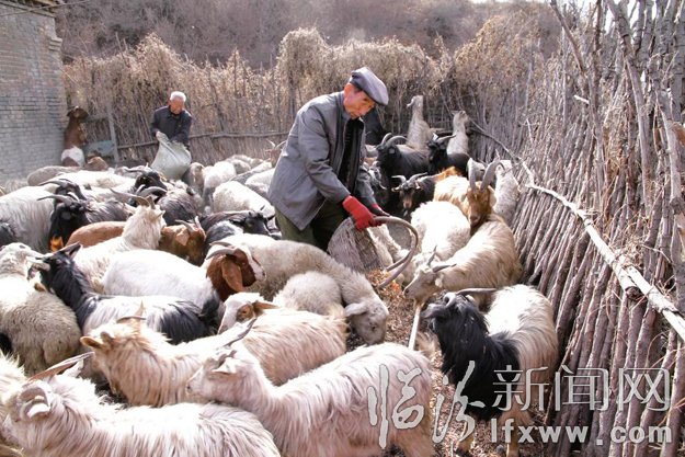 古县古阳镇相力村55岁的村民王志刚,有30余年的养羊经验。他养的土山羊和小绵羊共130余只,如今是又肥又壮,年收入达4万元左右。王老汉介绍,土山羊耐寒病少,以玉米粒、玉米叶、苜蓿和杂草为主喂养,是纯绿色食品。