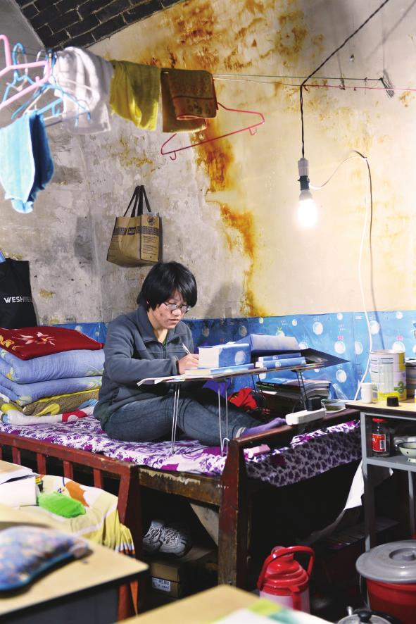 图为山西师范大学文学院学生宁永慧在蒲县克城镇公峪中学宿舍备课