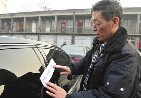 1月30日,工作人员在给临汾市的公车张贴封条。