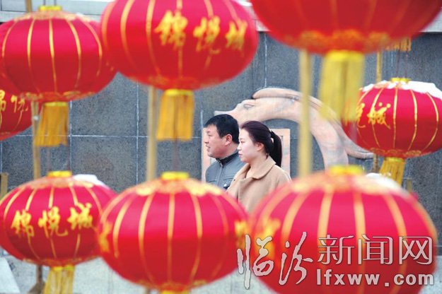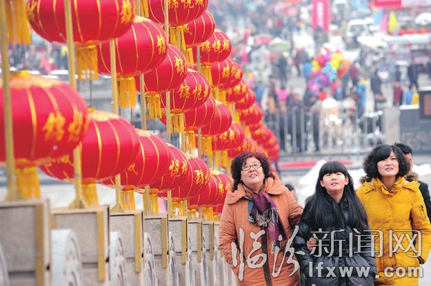 正月初十,在我市华门景区随处可见悬挂的大红灯笼,为节日增添了许多喜庆气氛。