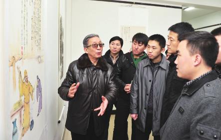 2月14日,在临汾晋宝斋著名指画家宋希祥指墨画展开展。此次画展展出了宋希祥17年来不同阶段的指画作品百余幅,为市民的元宵佳节送上了一道特别的文化盛宴。 本报记者李虎威摄