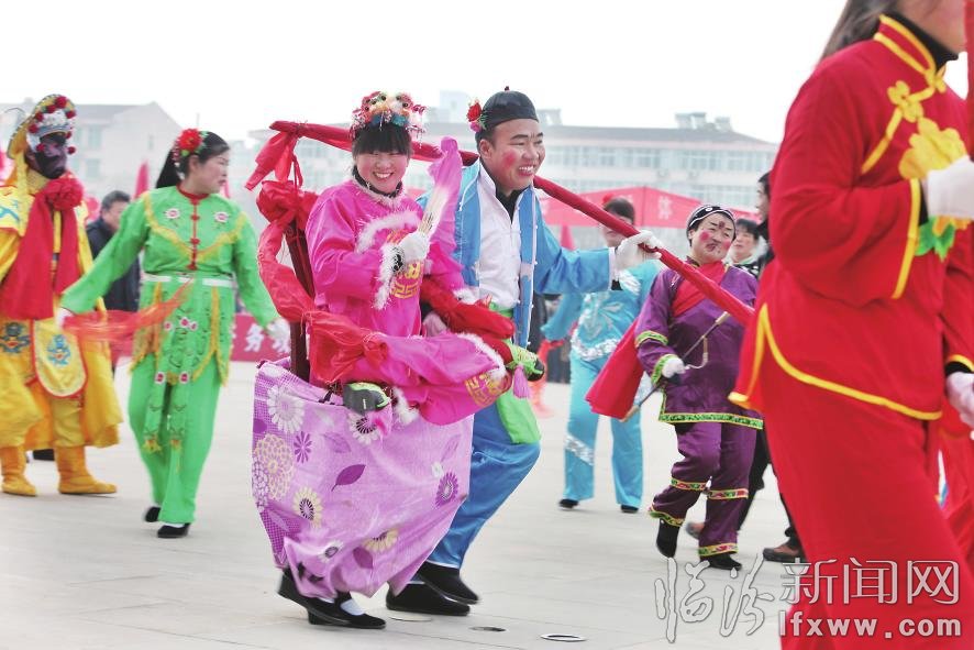 2月14日,浮山县庆元宵大型社火活动在该县文体广场举行。来自全县14个社火队分别表演了锣鼓、舞龙、秧歌、腰鼓等传统节目,近万名观众观看了表演。 周磊摄