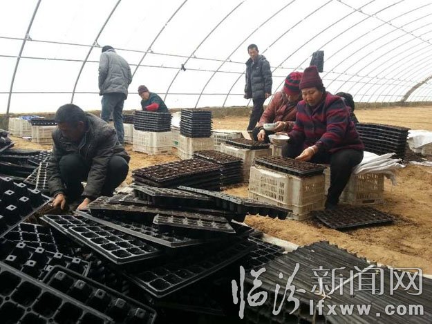 雨水刚过,在大宁县曲峨镇胡城蔬菜园区里,菜农们又开始在打棚里忙活起来。图为胡城蔬菜园区的菜农正在用育苗盘进行育苗。冯振兴摄影报道