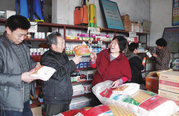 近日,在尧都区贾得乡刁家庄农资销售网点,农民正在购买种子和农药,为春耕备播做准备。