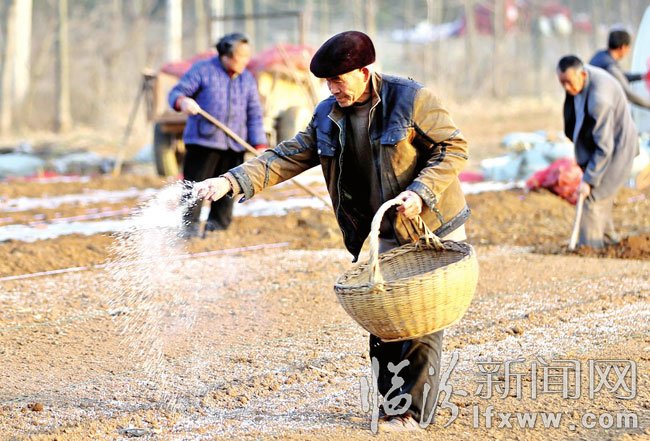 三月二十一日江苏省淮安市盱眙县王店乡马场村村民在田间施肥当日是农历二十四节气中的春分江苏省淮安市盱眙县农民抓紧农时进行春播春种, 田间地头一片忙碌的生产景象。 新华社发