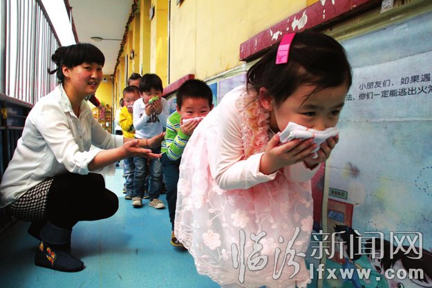 在安全教育日到来之际,我市的许多学校和幼托机构都通过主题班会、观看安全教育影片、开展安全知识讲座、逃生训练等形式强化学生安全意识。图为3月27日,尧都区中山幼儿园的小朋友们正在以班为单位进行消防逃生演练。