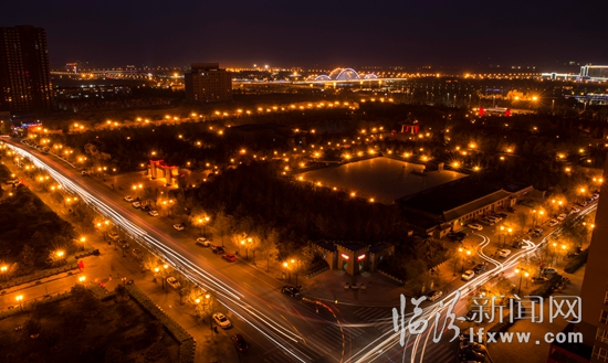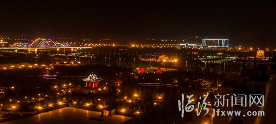 入夜,平阳璀璨夺目,分外迷人。街道旁、建筑上夺目而富于变化的夜景灯装扮着大街小巷,如星月般点“靓”了城市,身在其中的市民无不感受:古城夜色靓了、美了! 记者 张蕴强 摄