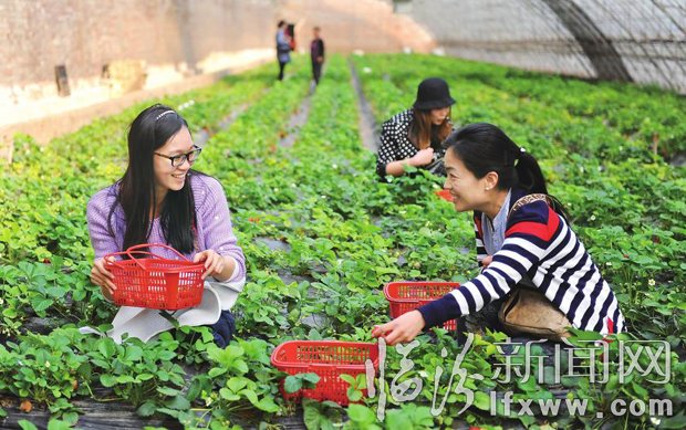 4月2日,在尧都区淼源农业开发有限公司的草莓采摘园,市民在体验采摘的快乐。随着天气的转暖,踏青出行,体验采摘快乐成为一种新的生态旅游方式,采摘游逐渐在城市中兴起,人们在感受田园自然风光的同时,体验亲手采摘乐趣。