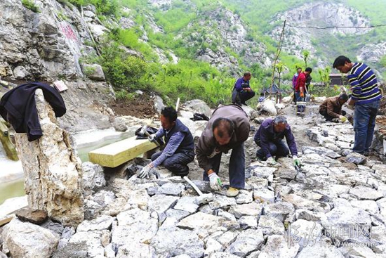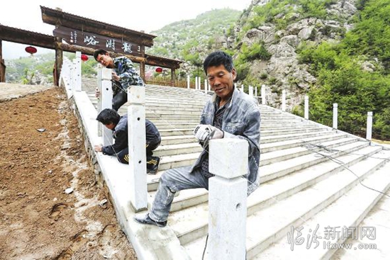 4月18日,记者走进龙澍峪旅游风景区,工人们正在紧锣密鼓地施工。一路走来,摩崖 石刻随处可见,这里不仅有元代大书法家赵孟頫所提的“天门高处两仙桥,飘渺白云手可招;坐隐渐薰毛骨爽,翩翩鹤下羽翛翛”的书法石刻真迹至今犹在,还有举人、状元留下的笔记,这对书法爱好者无疑是一大乐趣。
